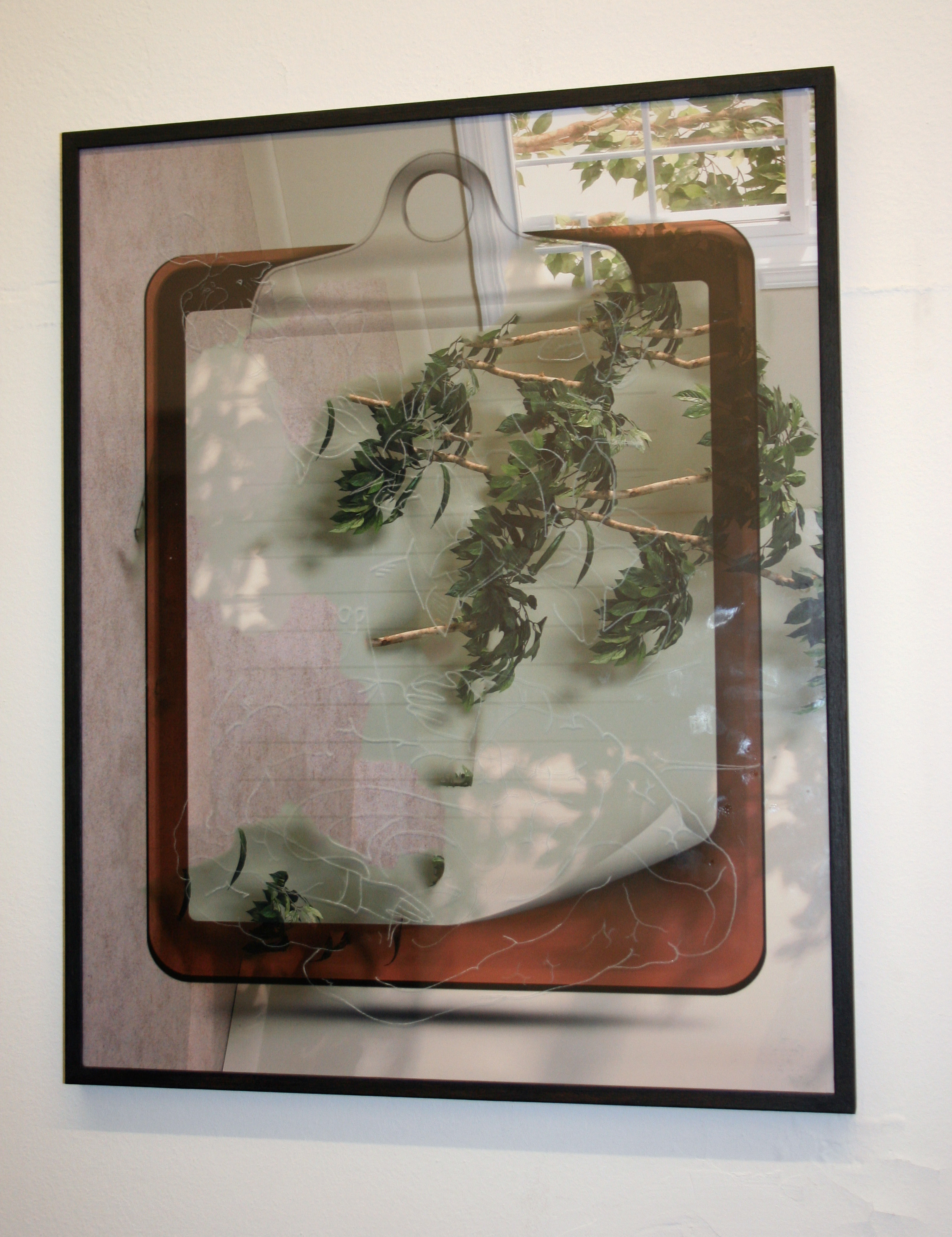 Digital print of scanned canvas on hand cut synthetic glass, 85