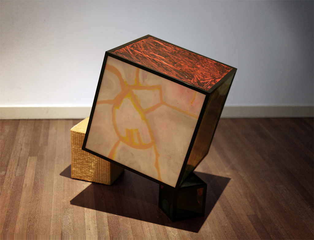 Assemblage – Synthetic glass, digital silkscreen, spraypaint. 95 × 95 × 95cm – Added 14½ years ago