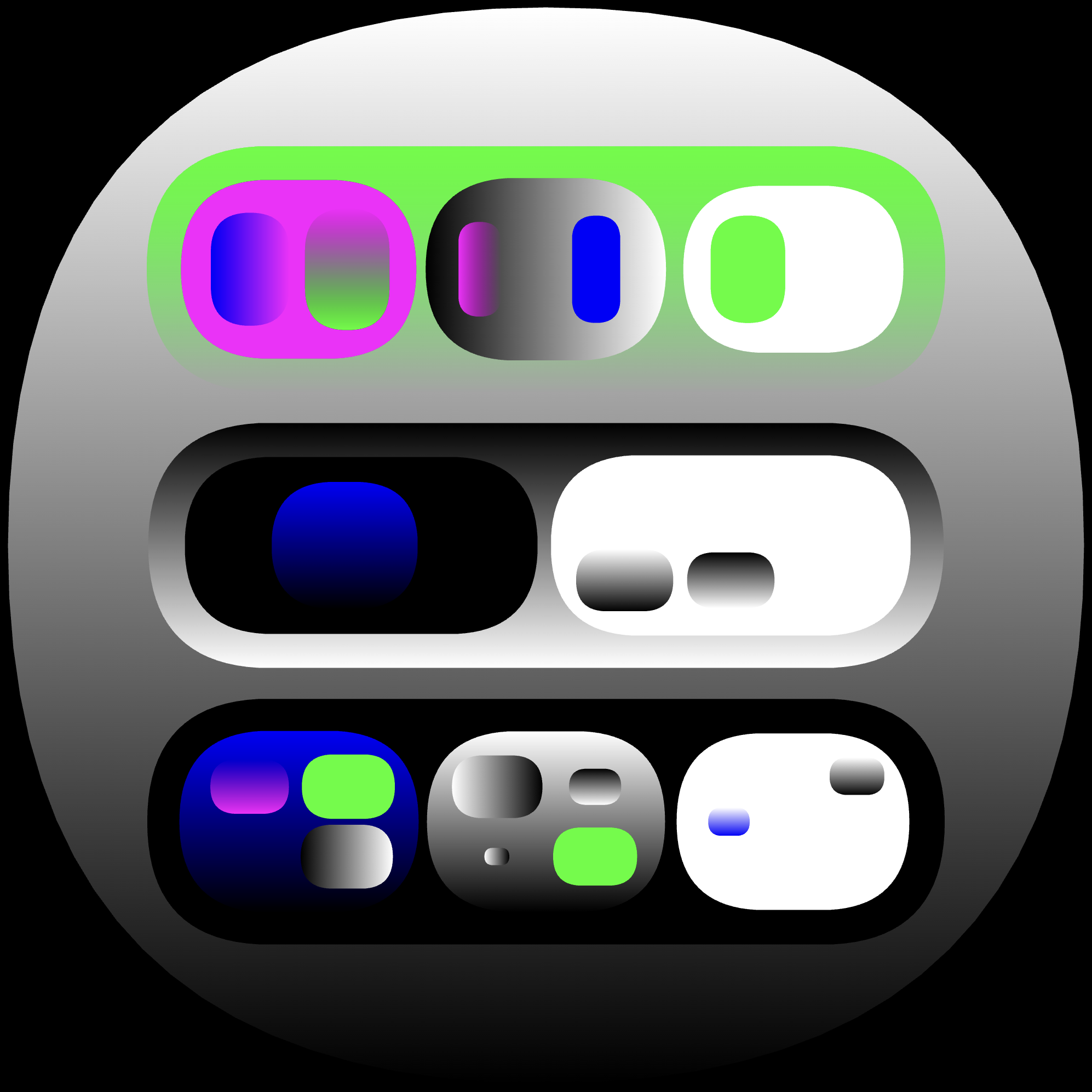 Eighteen years later, the palette returns — but the geometry has changed. The about page for this work identifies the trigger: the shift in computing from text-based tool interfaces to graphically-oriented corporate platforms. These platforms — smartphones, social networks, operating systems — replaced sharp geometry with rounded edges and organic shapes to simulate human warmth while constraining user agency. The squircle (the rounded square, Apple's defining UI shape since iOS 7) became the emblem of this shift.