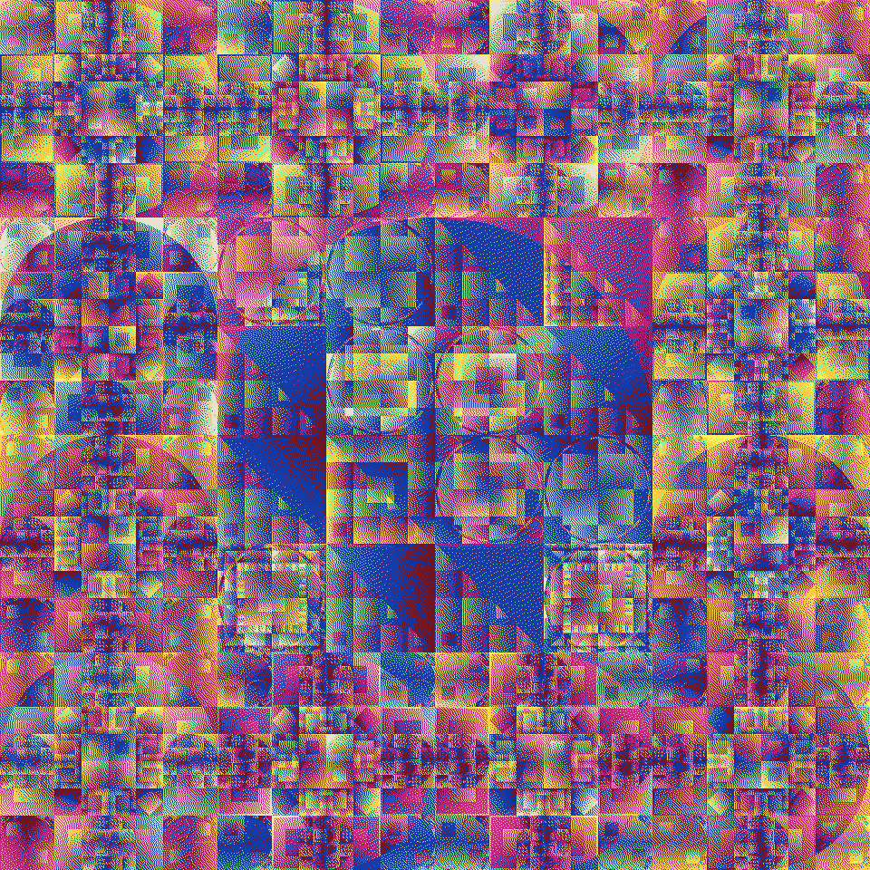 Each token receives a fixed "grammar" of shapes and rules at mint. From there, Ethereum block hashes act as seeds: every 12 seconds a new block arrives and a new composition is generated. The system has no memory — each composition is independent of all prior states. This is structurally a Markov process: the current state is fully determined by the current seed, with no accumulated history. (Contrast with Markov's Dream, where the memoryless structure was the subject of melancholic irony; here it is simply the mechanism.)