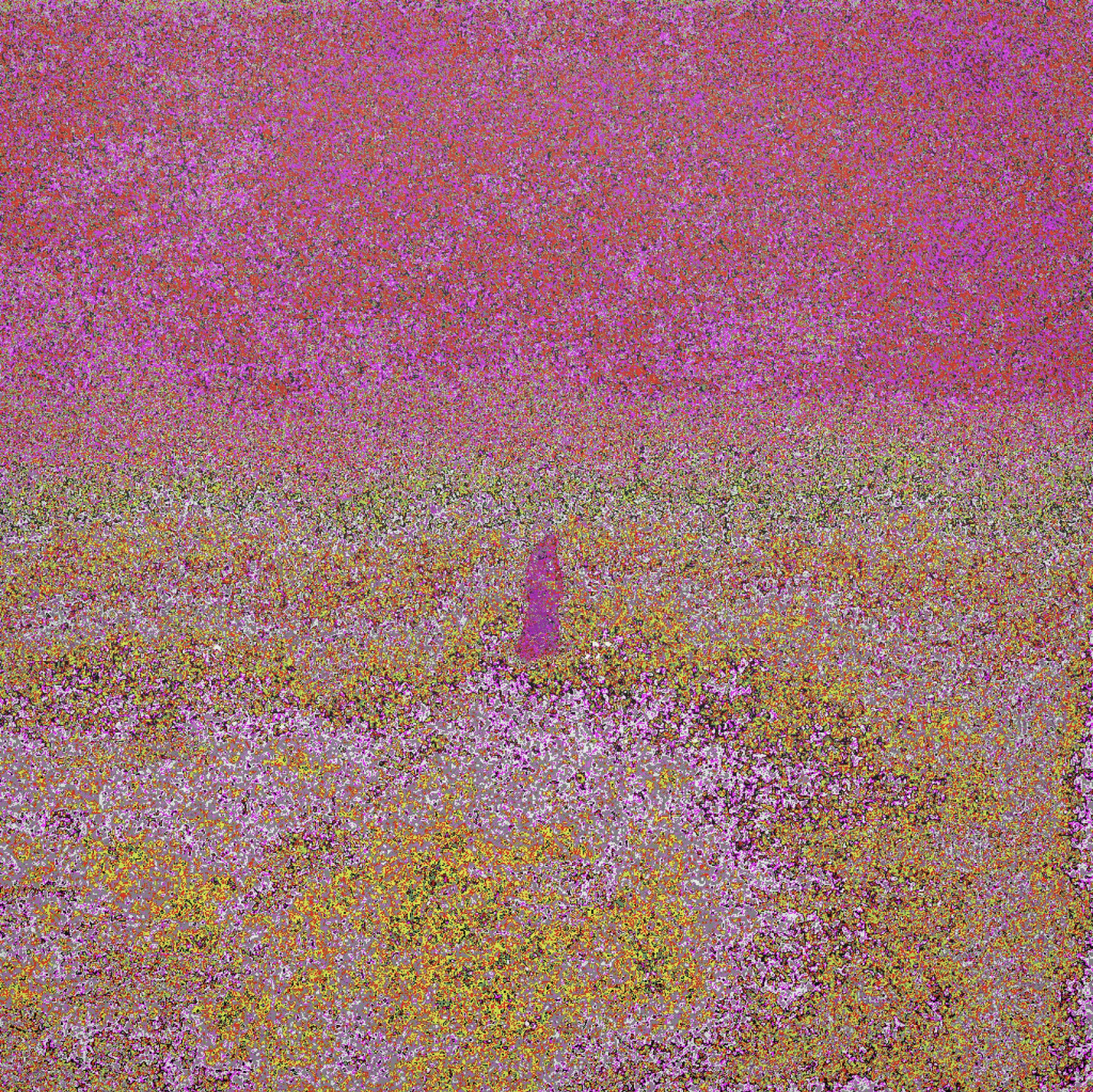 The animation mechanism extends this: resolution increases "almost as if it's rendering the work. Normally when we are rendering something or sharpening an image, we expect something to be revealed. In this case, the resolution is sharpening but nothing more is revealed." The expectation of revelation is invoked and denied. At high resolution the image is as abstract as at low resolution — the revelation was always the act of looking, not the thing looked at.