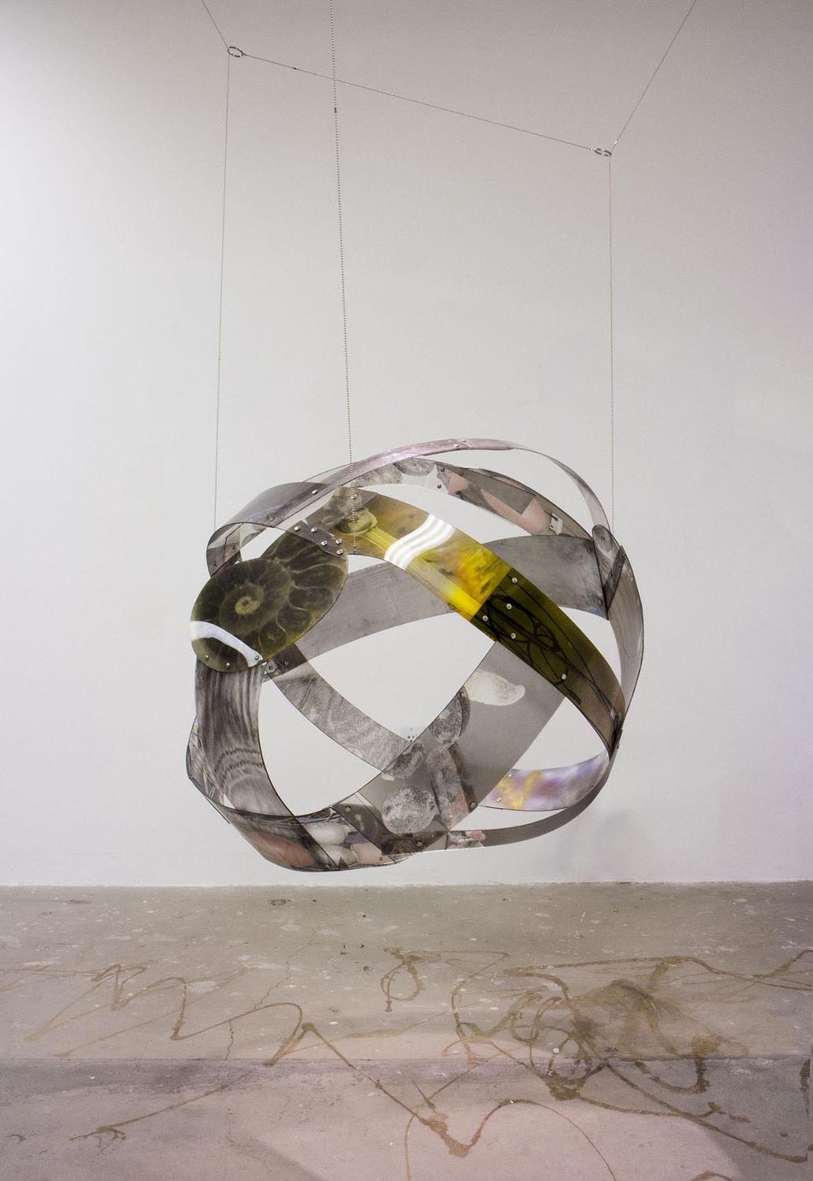 The Assemblages series (2011–2018): hand-cut synthetic glass, digital prints, spherical structures. The philosophically central work: Assemblage (everything vs. anything) (2013) — the Kottbusser Tor narrative (→ 1301, assemblage identity, mediation and the archive).