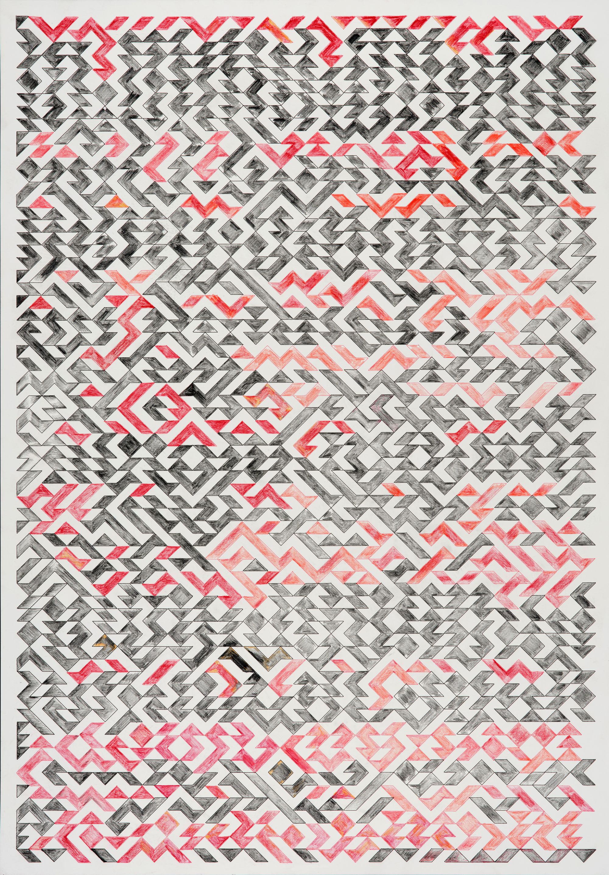 The earliest catalogued work: Markov's Window (2004) — geometric abstraction via Markov chains. The defining property of a Markov chain is that the next state depends only on the current state, not on history. This memoryless structure becomes a recurring reference point across the entire practice (→ randomness and pattern, protocol, taste, and systems).