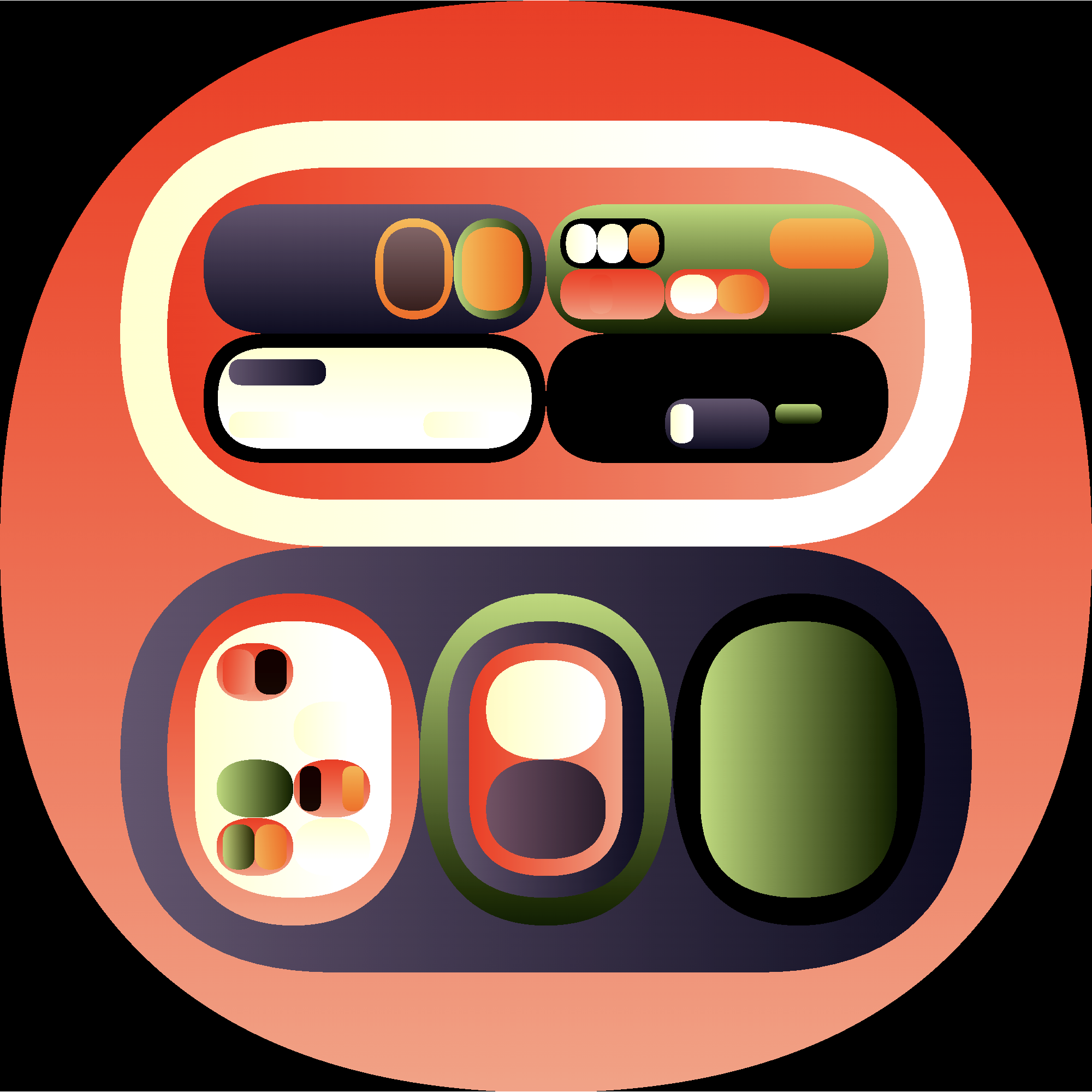 Pression des pairs (2024): "Generative animation inspired by the work 'Quatre éléments distribués au hasard' by Vera Molnár from 1959." Molnár is a founding figure of computer art, working with rule-based systems before computers were available. Pression des pairs is French for "peer pressure" — the force that makes cells align with their neighbors. Each cell's rotation depends on its coordinates within the canvas.